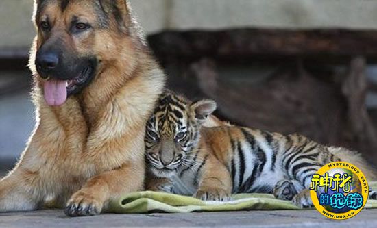 老虎是“百兽之王”,其他动物大都避而远之。但是在澳大利亚的一家动物园里,德国牧羊犬茹姆勃却把刚出生3个月大的小虎仔金瓦当成了小弟弟,自告奋勇担负起保护金瓦的重任。两个小家伙像一对亲兄弟,别提多亲密了。