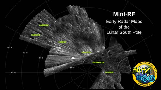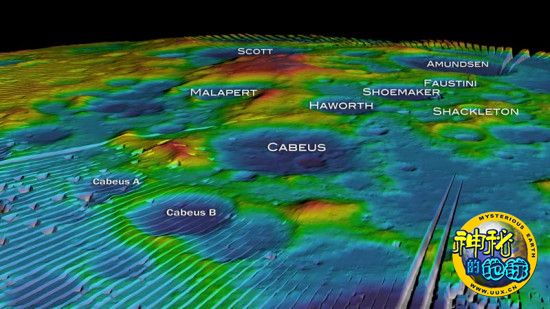 美国宇航局根据月球勘探轨道器获得的数据制作的月球南极图