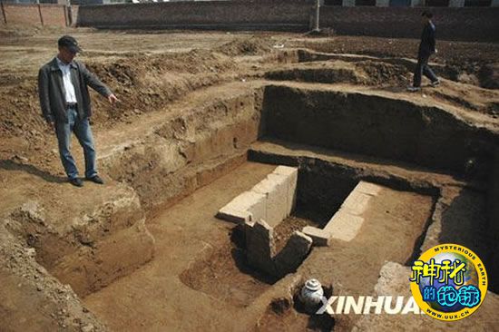 9月23日,专家在西安木塔寺遗址现场介绍新发现的北宋巨石舍利塔地宫。图中右下方白瓷缸则是一位清代僧侣的瓮棺葬。新华社记者 冯国 摄
