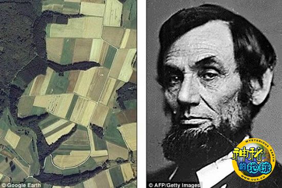 左图展示了波兰的田野,看上去是否像一个留胡子的男人?这个男人是不是很像没戴帽子的第16任美国总统亚伯拉罕·林肯?