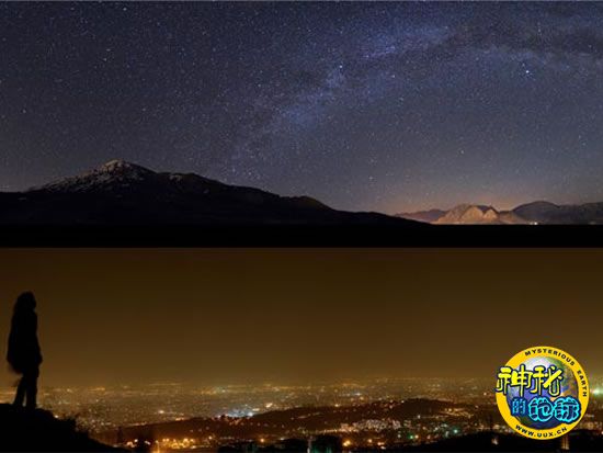 在沙漠拍摄的壮观夜空 来源: 蜘蛛网 时间:2009年9月28日 09:32 4.光污染剥夺现代人欣赏夜空美景机会 光污染剥夺现代人欣赏夜空美景机会 在大城市,光污染使人们丧失了欣赏夜空美景的机会。这张合成图清楚地显示了光污染的危害。上半部分照片是在伊朗北部一个没有光污染的山区拍摄的,璀璨的繁星在夜空熠熠生辉。而下半部分的照片是在德黑兰拍摄的,据上半部分照片拍摄地点仅65公里,却丝毫也欣赏不到美丽的星空。据了解,在没有光污染的偏远地点,肉眼可以轻易地看见4000多颗明亮的星星。 上一页123456789下一页 上一篇 下一篇
