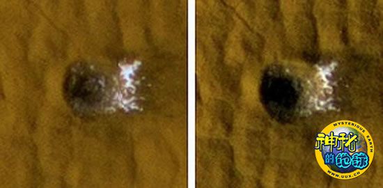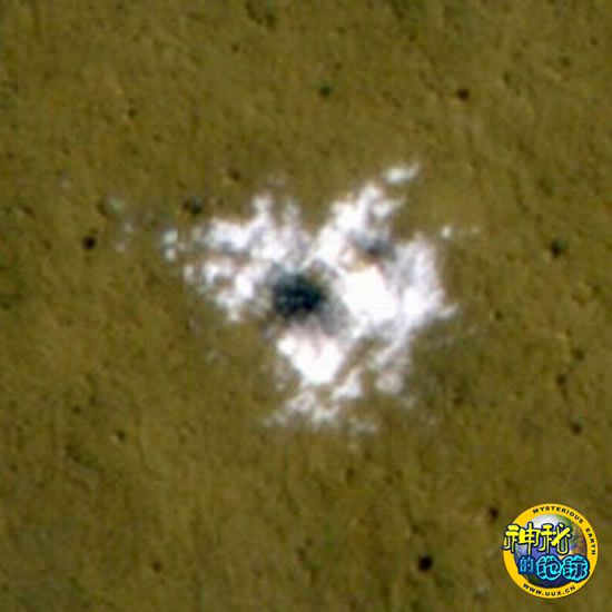 2008年11月1日,美国宇航局火星轨道勘测器超高分辨率成像科学实验(HiRISE)照相机拍摄到带有冰水物质的8米直径陨星碰撞弹坑。