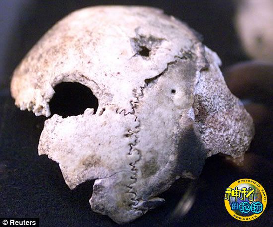 这块带有弹油的头骨保存在俄罗斯的一家档案馆里,现在被证明是一个女性的头骨