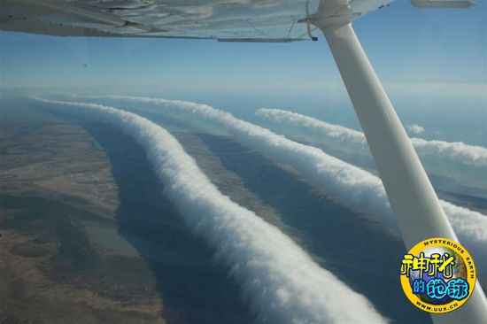 这种云彩被称为管状云,它还有一个优雅的名字叫“晨暮之光”(Morning Glory)。每年秋天,澳大利亚昆士兰州伯克顿镇上空都会出现这些长长的管状云,最长可以延伸到约966公里,移动的时速最快可达35英里(约合56公里),即使在无风的天气里也可能给飞机制造麻烦。伯克顿是一个偏远小镇,居民不足200人。每年都有一些飞行员和游客来到这个小镇,希望能亲眼目睹这一神秘云彩。