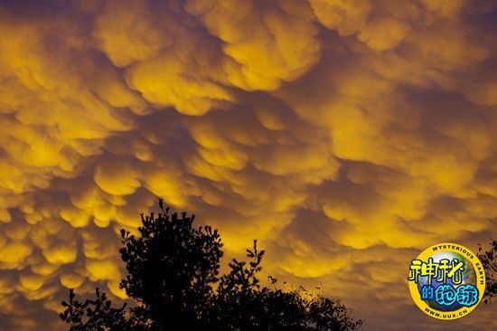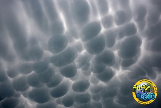 这种云彩被称为“乳房云”。乳房云的出现通常预示着暴风雨天气的降临,世界各地经常出现这种奇异的气候现象。美国加州大学圣克鲁兹分校物理学家帕特里克·张称,“这种云彩的外形看起来很奇怪,如同一个个袋子挂在天空一样。”