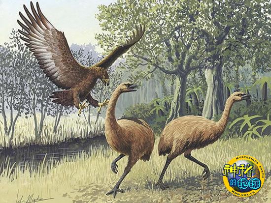 食人鸟能从空中攻击恐鸟,先用锐利的爪子把恐鸟击倒,再撕食其肉