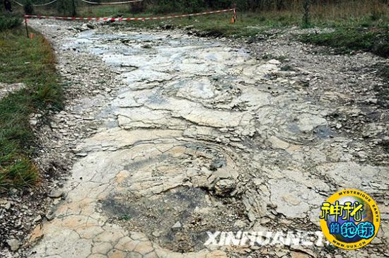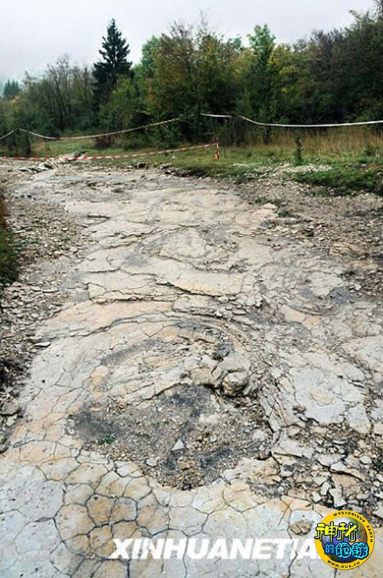 在法国东南部城市里昂附近的普拉涅拍摄的“恐龙足迹”。
