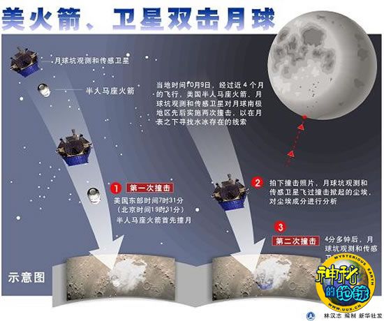 美国航天局10月9日举行新闻发布会宣布,该局下属的天文台及所拥有的航天器观测了半人马座火箭、月球坑观测和传感卫星当天对月球相继实施的两次撞击并获得撞月数据。