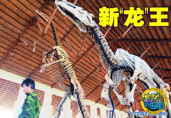 10月11日,在诸城,一具世界上最大的鸭嘴龙骨骼化石(图中左侧)已修复完成,专家初步将其命名为"巨大华夏龙"。它体长超过21米,比"世界龙王"巨大诸城龙长近4米。特派记者 陆金星 刘鑫 摄