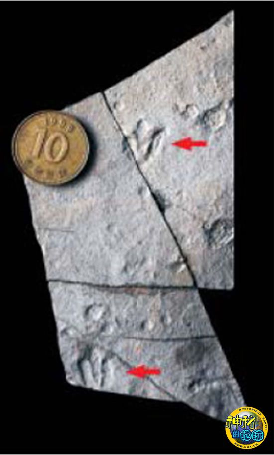 韩国庆尚南道南海郡发现世界上最小的幼年恐龙脚印化石。该化石长1.27厘米、宽1.06厘米。