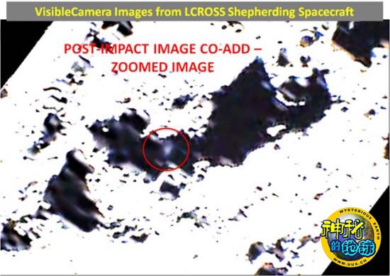 据美国太空网报道,美宇航局科学家日前宣布,他们在其收到的数据中最终发现了LCROSS探测器撞击月球产生的羽状尘埃物质。