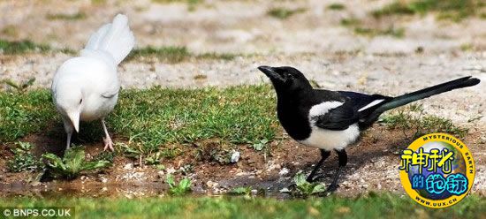 英国摄影爱好者拍到罕见白化喜鹊照片