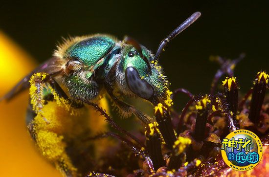 叹为观止的昆虫微距照片 来源: 蜘蛛网 时间:2009年10月19日 14:56 14、绿集蜂 绿集蜂 图中的绿色集蜂与欧洲蜜蜂非常相像,但它们并不是集中生活在蜂巢中,而是离群索居,生活在泥土里,由雌蜂负责筑巢,并将卵产在花粉球上。当你看到集蜂身上布满了黄色的花粉斑点,你就能确信它们是高效的花粉传播者,尤其是在苜蓿园中。 1...上一页78910111213141516下一页 上一篇 下一篇