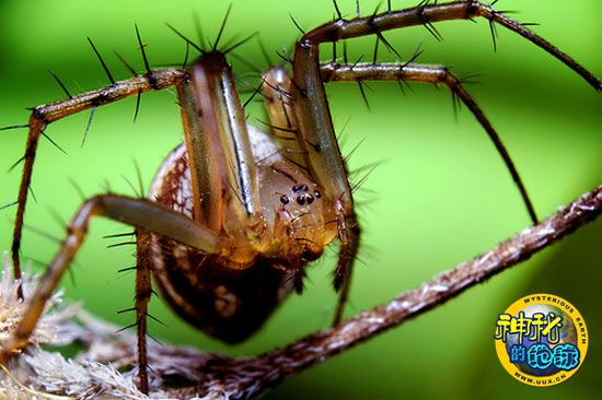 叹为观止的昆虫微距照片 来源: 蜘蛛网 时间:2009年10月19日 14:56 2、圆蛛 圆蛛 长满尖刺的长腿是不是让人不寒而栗?这只圆珠如同所有的蜘蛛一样,并不是我们应当铲除的害虫。事实上,蜘蛛基本对人无害,还能有效地杀灭害虫,因此驱除蜘蛛有百害而无一利。蜘蛛的种类数目繁多,自然界中蜘蛛有四万多种。这些蜘蛛大致可分为游猎蜘蛛、结网蜘蛛及洞穴蜘蛛三种。第一类会四处觅食;第二类则结网后守株待兔;第三类则喜欢躲在沙堆或洞里,在洞口结网,网本身没有黏性,纯粹用来感应猎物大小,并加以捕食。 上一页12345678910...16下一页 上一篇 下一篇