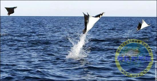 从照片中我们不难看出,魔鬼鳐拥有惊人的跳跃能力。这些照片是在位于墨西哥湾南端的科特斯海拍摄的。魔鬼鳐从深海跃向几英尺高的空中已经足以令人惊叹不已了,但更令人叫绝的是,在此过程中,它们还会翻上几个跟斗,本事和杂技演员可谓不相上下。然而,没有一个人知道它们为什么要这么做。一些理论认为,这可能是一种求爱行为;赶走身上的寄生虫;追赶猎物或者只是为了取乐。