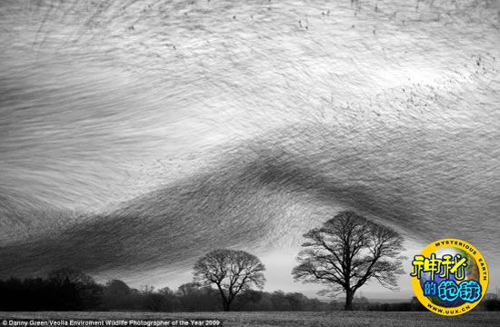 2009年威立雅环境及野生动物摄影比赛揭晓 来源: 蜘蛛网 时间:2009年10月23日 14:12 6.椋鸟云 椋鸟云 第一眼看上去,这似乎是一张铅笔画。实际上,照片中这朵令人过目不忘的“黑云”隐藏着数千只星椋鸟。为了躲避一只前来掠夺的游隼,它们在慌乱中突然转向和俯冲。拍摄时,摄影师丹尼·格林采用慢快门速度,以突出飞行中的星椋鸟猝然下降的瞬间,由此产生的视觉效果可谓令人叹为观止。格林的这幅摄影作品无疑是在告诉人们,大自然才是最伟大的艺术家。 上一页1234567下一页 上一篇 下一篇
