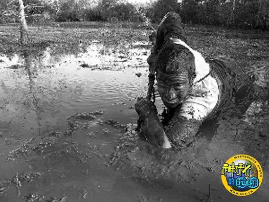 贝尔亲身示范,教观众如何从沼泽泥坑中脱身。