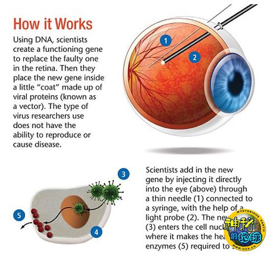 长期以来,研究者一直在努力破解人体内产生感光视觉细胞的密码,一旦成功,可能会给很多盲人带来福音,将是令人难以置信的伟大成就。该注射手术将特殊的基因植入人体内,会在眼球后面产生感光色素,取代那些因病丧失的色素。