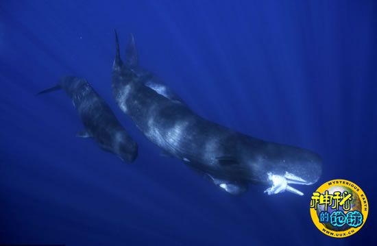 诺曼认为,这群抹香鲸可能已经教过小鲸如何利用它的内置声纳系统——回声定位能力在海洋深处发现猎物。他说:“回声定位能力是抹香鲸寻找猎物的关键,雌鲸有可能把死鱿鱼放到深处,然后让小鲸在海洋深处(一般是水下800米处)一片漆黑的环境下,凭回声确定它的位置。”