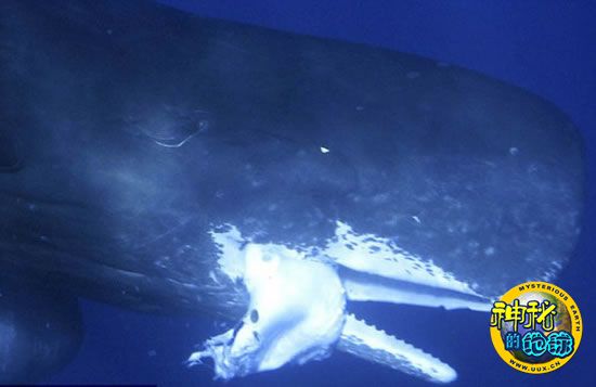 抹香鲸是赫尔曼·梅尔维尔的《白鲸记(Moby Dick)》和儒勒·凡尔纳的《海底两万里》等畅销科幻小说最喜欢提到的动物。不过现实中也有一些与抹香鲸有关的惊人场景,下面这些罕见的图片就是其中之一。这些图片显示的是一只抹香鲸正在吃一只巨大的鱿鱼。