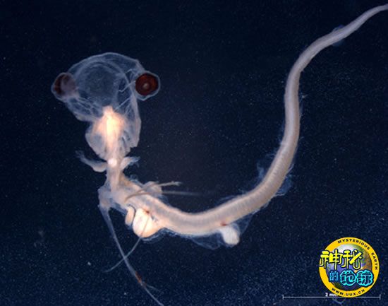 2009年发现的六种最怪异生物 来源: 蜘蛛网 时间:2009年10月30日 15:35 2.无鳞鱼 无鳞鱼(图片提供:Dave Johnson) 这条外形诡异的鱼是2009年9月在巴西的巴伊亚海岸附近发现的,体长6英尺(约合2米),发现时已经死亡,尚处于幼鱼期。研究人员后来检查发现,这是一种罕见的来自深海的泡状鱼。因其柔软的鼻子以及无鳞的锥形躯体,它们被称为“果冻鼻鱼”(jellynose),以海底生物为食。 上一页123456下一页 上一篇 下一篇
