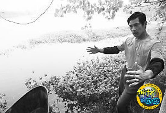 刚上岸,老蔡就用手把住岸边一男子的腰部比划起来。村民老杜跟老蔡很多年交往了,他解释说老蔡在水塘芦苇丛边看到了水怪,说有刚才那个男子腰部那么粗,有扁担这么长。