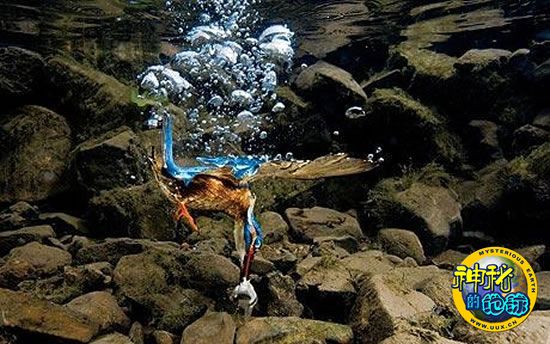 摄影师查理·哈米尔顿·詹姆士拍到了翠鸟跃入水中捕鱼的精彩瞬间,也是11月号《国家地理》杂志上刊登的系列摄影作品之一。