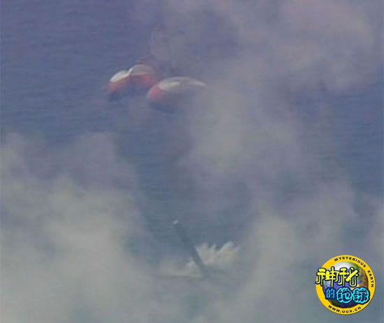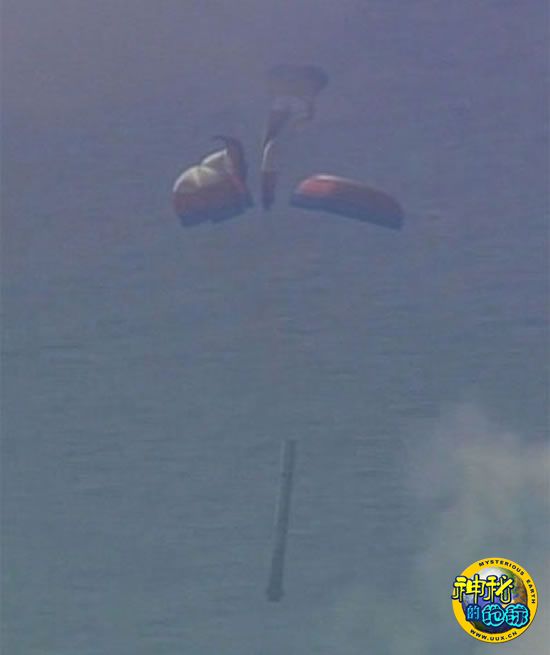 飞机拍下战神1-X火箭降落伞故障溅落水中全过程