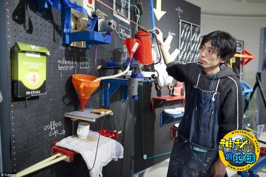 铃木友里出生于日本东京,3年前来到伦敦东部的哈克尼居住。接受采访时,他讲述了如何从好莱坞影片获得灵感,决心创造出这样一台令人吃惊的机器。他说:“在类似《笑匠皮威赫曼》和《回到未来》等影片中,你都能看到神奇的早餐机。”