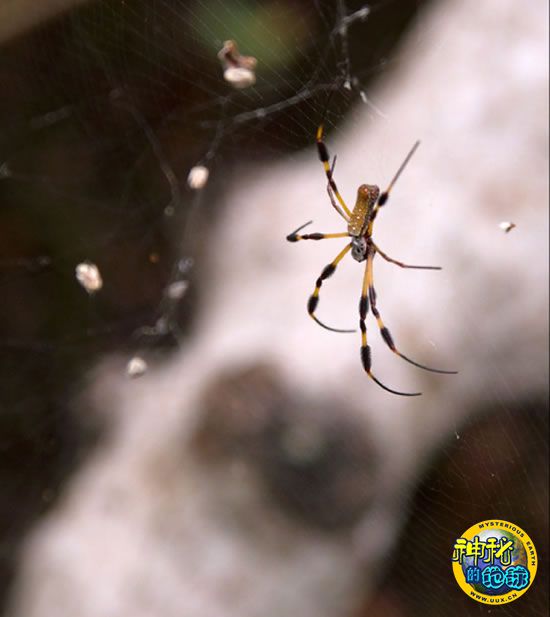 金色圆蛛可以称得上是世界上最勤奋的蜘蛛,这不仅仅是因为它们可以织出巨型、复杂的金黄色蛛网,而且它们每天都会在原有的蛛网上忙忙碌碌。由于它们织出的蛛网可能会随时失去粘性,因此它们每天都在不断地修补以保持蛛网处于最佳的捕捉状态。金色圆蛛所织出的网最大直径有3英尺长(约0.9米),看起来就像是一个巨大的车轮。它们的蛛丝强度往往令人难以置信,完全可以与钢丝或凯芙拉纤维的强度相比,甚至比钢比更有韧性,可以拉长两倍而不断。在阳光下,蛛丝呈现金黄色,而且还会闪闪发现。科学家们认为,这种光芒可以用来吸引昆虫。而在阴暗的角落里,蛛丝则呈现暗黄色,这样又可以用作伪装,防御敌人。