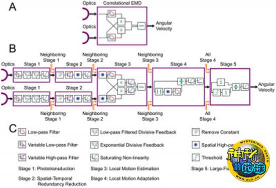 澳大利亚科学家用方程式表达出了与苍蝇视力相关的大脑细胞活性。他们通过这些方程式,发现了非常简单有效的方法,可以从原始数据中处理运动模式,这种运动模式指的是一个物体、表面、边缘在一个视角下由一个观察者(比如眼睛、摄像头等)和背景之间形成的明显移动,并用于小型无人飞行机器人遥感导航系统。