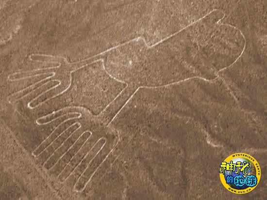 此外还有一幅名字叫鸟图的图画,在纳斯卡荒原上共砌着18个这种鸟图。这种鸟图尺寸非常巨大,长30~40米不等。同时,在纳斯卡出土的部分陶器上也发现有类似的鸟。