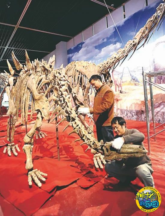 据宁波博物馆和重庆自然博物馆布展负责人介绍,此次展览双方已经策划了3个多月。此次来到宁波博物馆展出的共有13具恐龙化石骨架,包括禄丰龙、李氏蜀龙、釜溪峨嵋龙、太白华阳龙等以及现存侏罗纪时代亚洲最完整的剑龙、世界上最完整的肉食性恐龙头骨化石,最早的有1.4亿年历史,以侏罗纪时期为主。其中,还有两具“世界巨星”、重庆自然博物馆的“镇馆之宝”——号称“亚洲第一大龙”的合川马门溪龙和上游永川龙。另有一具多背棘沱江龙非常珍贵,“美国国家地理”曾为此专程到重庆自然博物馆拍摄。