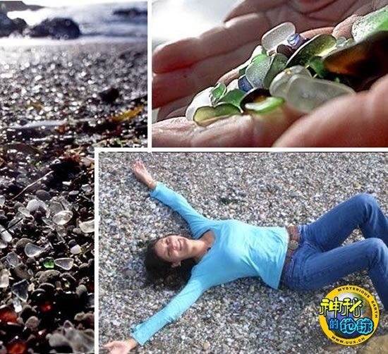 看着今天的玻璃海滩,我们很难相信这个如此美丽的地方居然在当地充当了近20年的垃圾场。1950年至1967年间,这片最初属于一家木材公司的沙滩被当地居民用作一个垃圾场。在此之后,市政当局作出决定,指定位于内陆的一个垃圾场取代玻璃海滩,后者才得以告别“肮脏”的过去。绝大多数较重的垃圾被运出沙滩,通过将数吨碎玻璃逐渐冲刷成漂亮的小圆石外形,太平洋代替人类完成了最终的清理工作。