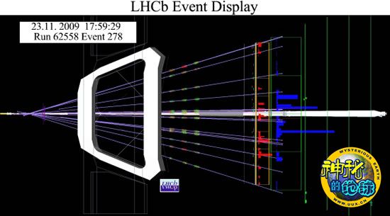 在大型强子对撞机的环形隧道中,两束粒子流分别沿着逆时针和顺时针两个不同方向传播,这样它们就会在隧道中的两个地方实现交错。在当日下午早些时候,两束粒子流在环形隧道的1点钟和5点钟处实现两次交错,这两个地方分别是ATLAS实验探测器和CMS实验探测器所在的位置。每一次交错时两束粒子流都在寻找对撞的机会。后来,两束粒子流又在环形隧道的2点钟和8点钟处实现交错,这两个地方又分别是ALICE实验探测器和LHCb实验探测器所处的位置。