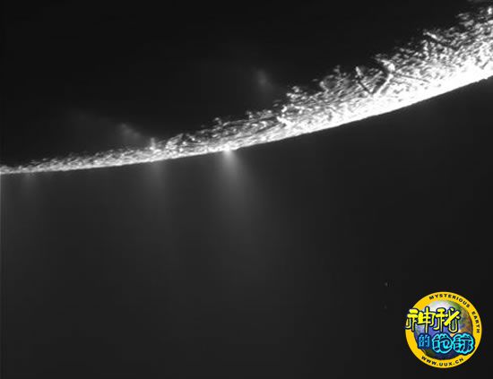 土卫二又名“恩克拉多斯”,是土星冰环上的一颗闪亮星球,在离土星最远的一个环绕轨道运行。“恩克拉多斯”是太阳系中已知的最亮的卫星,因为它上面覆盖有新的冰。这颗卫星的表面非常寒冷,但令人意外的是,冰壳下面是一个相对活跃的世界。科学家尤其对“土卫二”所谓的“虎斑纹”感兴趣。“虎斑纹”是土卫二南极地区表面的开裂,能够喷射水蒸气和其他气体,高度可达数百公里。几年前,卡西尼飞船曾发现土卫二南极不断喷射水一样的间歇泉。水,这一生命最关健的组成成分,被喷射到了430公里外的太空,居然击中了在土卫二上空急速行驶的卡西尼太空船。