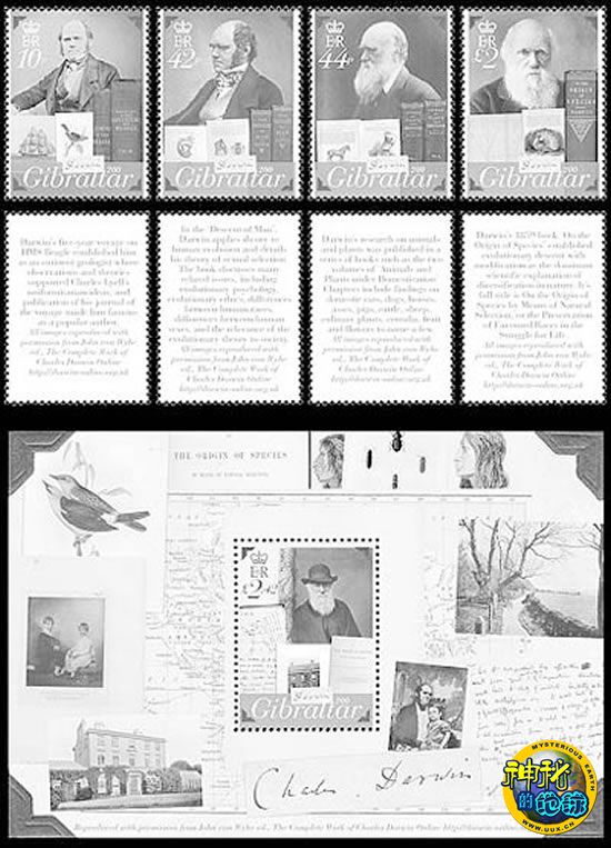 欧盟发行的纪念达尔文诞辰200周年达尔文与直布罗陀海峡纪念邮票