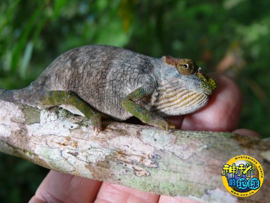 近期,英国约克大学生态学家安德鲁-马歇尔正在坦桑尼亚乌德宗瓦山国家公园原始森林中考察猴类的生存状况,他正巧碰到了这一惊险的场面并救下了这只小变色龙。马歇尔介绍说,“我当时正在做一些科学考察,突然看到了这条树蛇。它也看到了我,它竟然从口中吐出一只奇怪的小变色龙,然后匆忙逃走。我拍下了变色龙的照片,并将照片拿给当地的爬行动物学家辨认。他们认定,这是变色龙的一个新物种。”