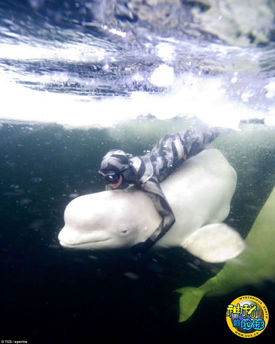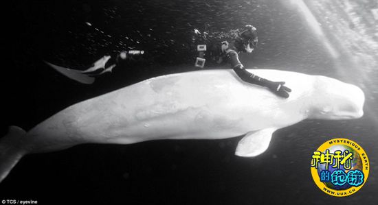 3吨重的白鲸充当了帕特里克的坐骑,帮助她潜入水下深处