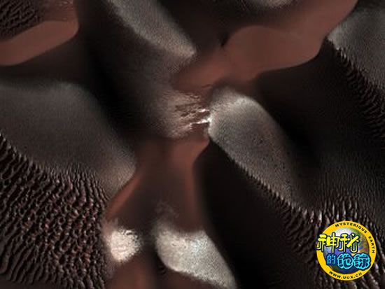 美国宇航局“火星侦察轨道器(Mars Reconnaissance Orbiter)”上携带的“高清科学实验成像”(HiRISE)照相机日前成功拍摄到了火星沙丘被一层白霜覆盖的照片。