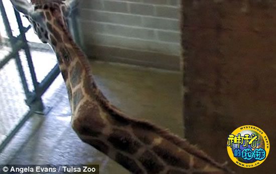现年4岁的艾玛莉是一只雌性长颈鹿。10月18日,艾玛莉被从位于俄亥俄州的野生动物公园转运到位于俄克拉荷马州的塔尔萨动物园。在运送途中,身高11英尺的艾玛莉脖子不慎被扭伤,致使脖子变得弯曲。幸运的是,艾玛莉并未表现出任何不适。