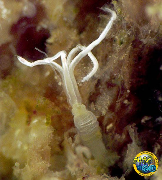 美国海域发现数种啃噬鲸鱼尸骨新蠕虫 来源: 蜘蛛网 时间:2009年12月04日 10:07 3.透明食骨蠕虫 透明食骨蠕虫(图片提供:Greg Rouse, MBARI ) 此图是科学家在2009年拍到的食骨蠕虫照片,它体长约2毫米,是已知最小的蠕虫之一。领导蒙特利湾水族馆研究所实施这项研究的海洋生物学家罗伯特·威利吉恩霍克(Robert Vrijenhoek)说,这个Osedax蠕虫种类(尚未有正式名称)“或许在过去受到了忽视,因为几乎看不到它们。”这种蠕虫的身体是透明的,没有毛茸茸的羽状物,使得它很多以骨为食的同类更易于发现。 上一页123456下一页 上一篇 下一篇