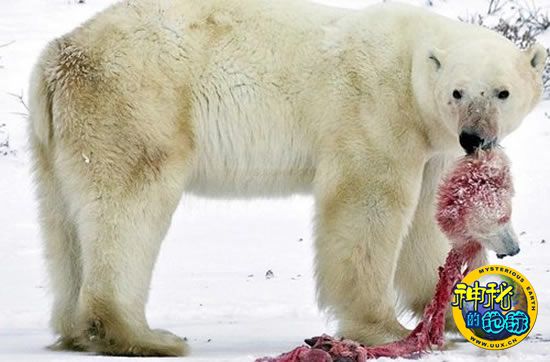 科学家发现,北极冰层变薄,让北极熊无法觅食,饥饿的公熊竟然转而残杀小熊或是同类来填饱肚子。