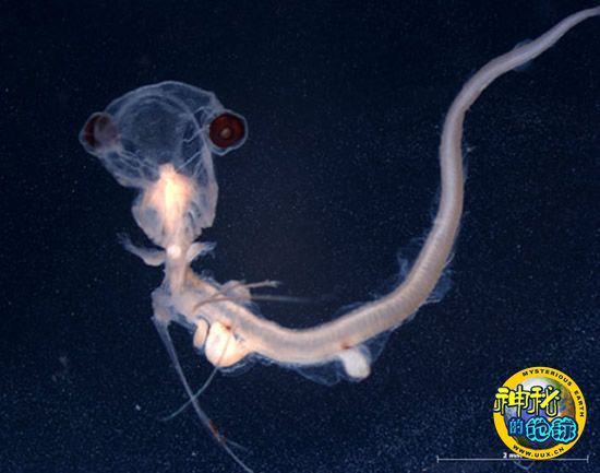 美国国家地理评选出2009年十大最受欢迎新物种 来源: 蜘蛛网 时间:2009年12月10日 11:22 8.果冻鼻鱼 果冻鼻鱼 2009年9月,人们在巴西巴希亚沿岸水面上发现了一具长2米的鱼类尸体。随后进行的分析显示,这是生活在深海的一种罕见泡状鱼。图片中展示的正是泡状鱼幼仔。由于柔软而扁平的鼻子以及无鳞锥形身体,这种鱼被形象地称之为“果冻鼻鱼”。它们生活在海底,处于食物链底层。对于在海底发现的任何能够消化的食物,它们都不会放过。 上一页12345678910下一页 上一篇 下一篇