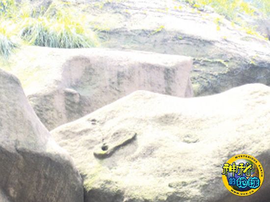 九华天池旅游景区不仅山清水秀,风光迷人,而且还有着数不清的奇形怪状的石头。最令人称奇的是,在景区大峡谷中段的一块巨石之上,有一个大脚印凸出在石头表面,吸引了无数游人的目光。这个大脚印与普通人的脚印极为神似,只是要大出数倍,且脚尖朝上,脚跟朝下,仿佛是一位巨人踩着石头向天空行走所留。据景区工作人员介绍,该大脚印为天然生成,和那些巨石一起历经了千年的风雨,至今依然赫然醒目。至于它是如何形成的,至今仍是一道难解之谜。景区工作人员说,像这种凸出于奇石表面的大脚印,在国内任何景区都尚未发现,唯九华天池景区所独有,因此,游客们只要来到此处,都会停下脚步,对着这个神奇的大脚印啧啧称奇,并对大自然的鬼斧神工感叹不已。