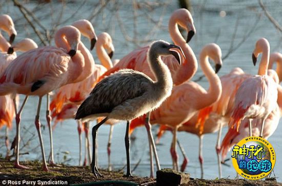 这种纯黑的美洲水貂并非原产英格兰,它们是由动物维权人士从养殖场营救后释放到野外,或者它们被捉后逃走,进入英格兰野外。然而这只幼小的火烈鸟坚强地活了下来,现在它已经可以跟18只强壮的智利火烈鸟一起到处走动。