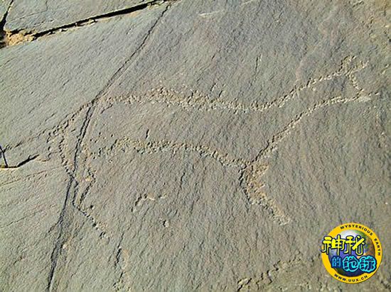 自上而下贯穿在岩画上的冰川擦痕遗迹