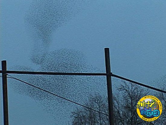 欧洲椋鸟群有如一大片黑压压的乌云,遮住了半边天空。