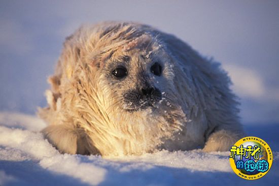 1.雪地上休息的斑纹海豹幼仔