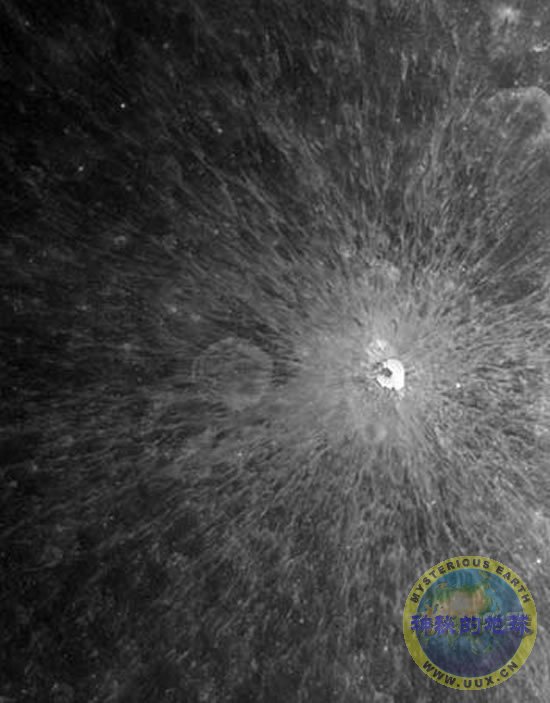 月球背面一个典型的辐射线撞击坑。本图是由5轨CCD正视影像数据拼接而成的,数据获取时间为2007年12月4日。图片来源:国家航天局